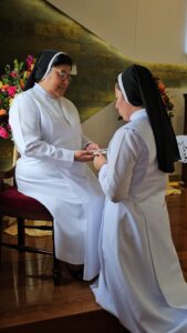 Llega el momento de la Profesión Temporal, es la alegría inmensa de haber dado una respuesta generosa a la llamada del Señor, es la alegría de anunciar que su amor es un amor a Jesús, que el corazón es para Jesús, lo cual le lleva a pronunciar libremente su fórmula de consagración, como Dominica de la Inmaculada Concepción.